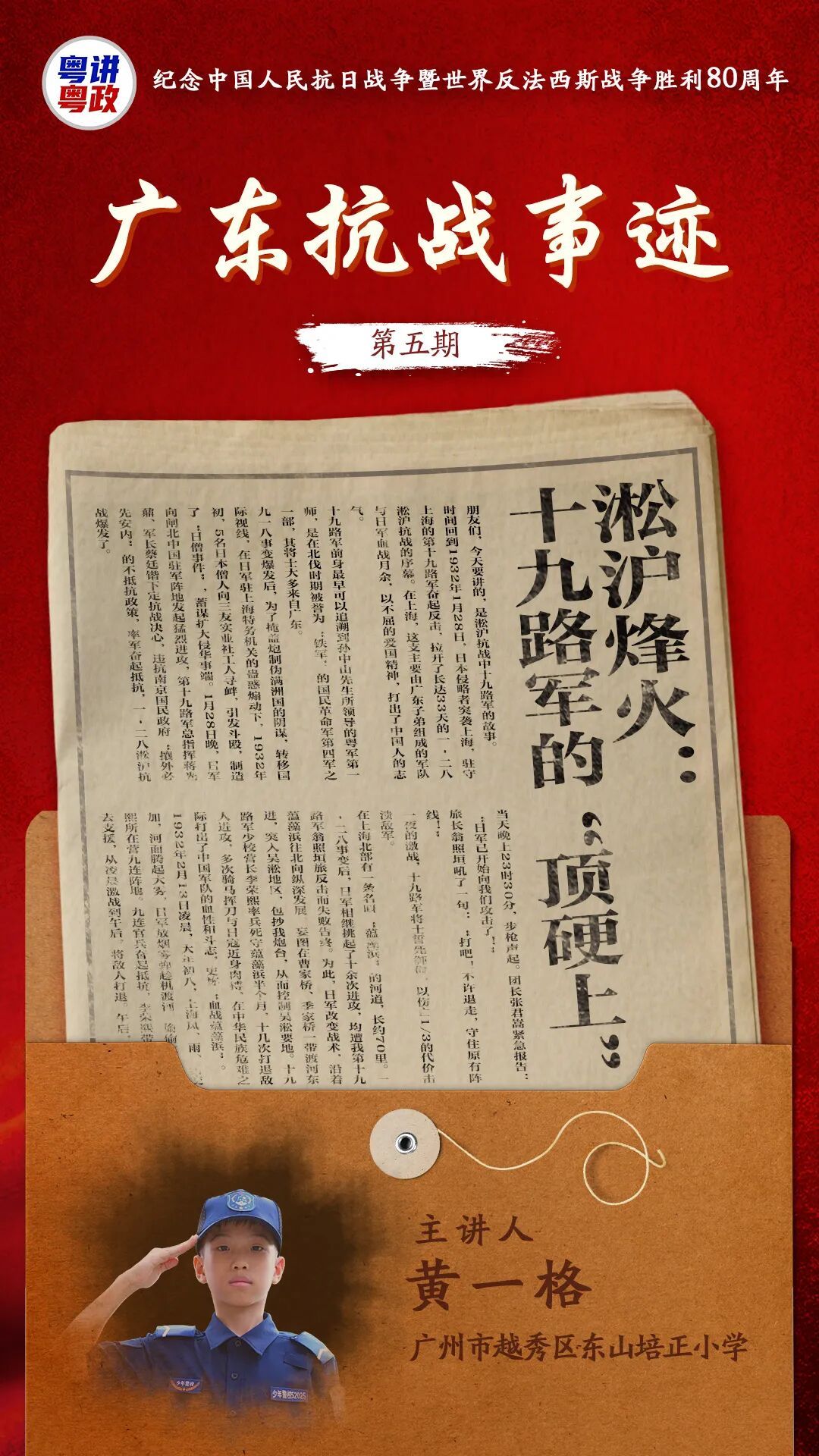 时间回到1932年1月28日,日本侵略者突袭上海,驻守上海的第十九路军奋起反击,这支主要由广东子弟组成的军队与日军血战月余,以不屈的爱国精神,打出了中国人的志气。