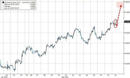 按当前10年期美债收益率的水平计算,这一临界值大约在4.75%-4.80%区间——即从本月初4.1%附近的低位上涨约60个基点。